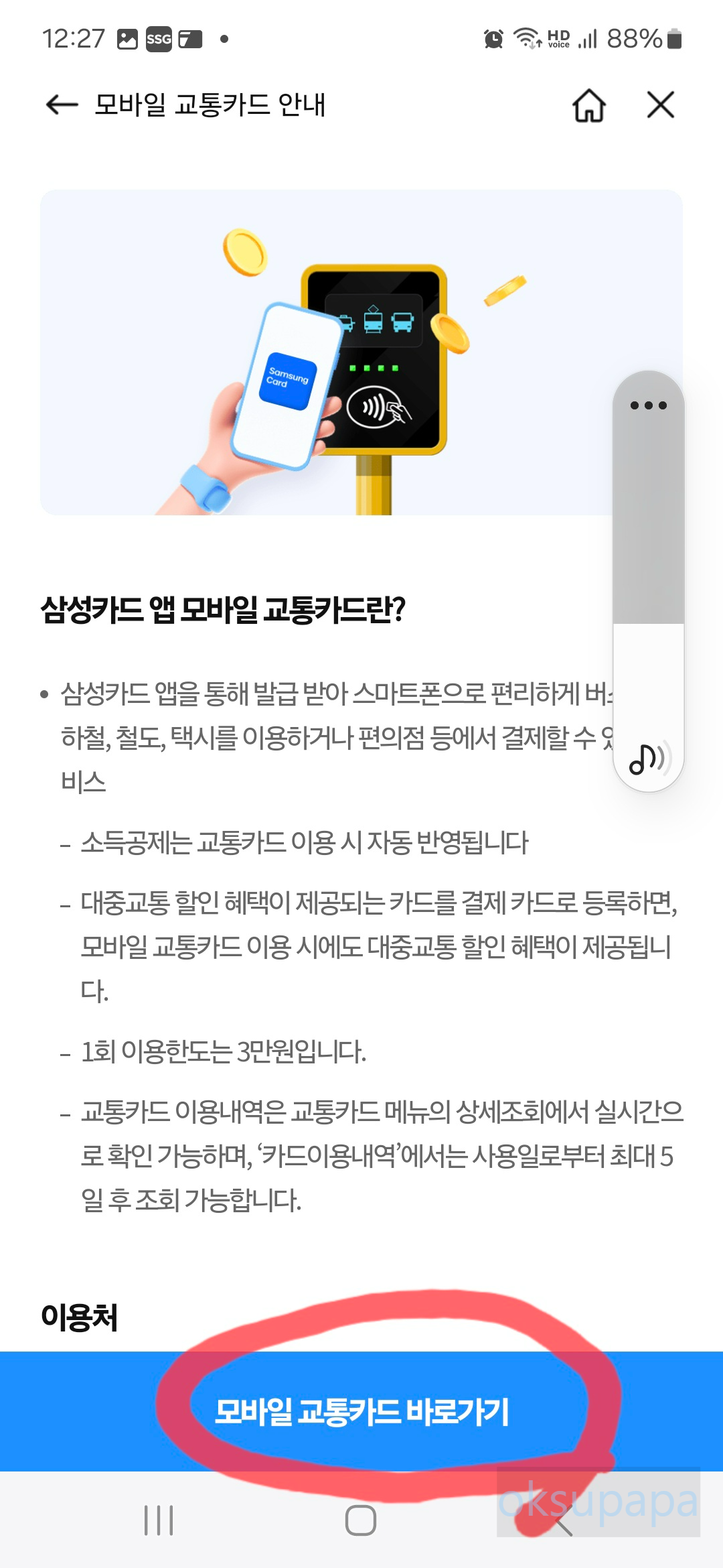 3. 삼성페이에 교통카드 등록하기