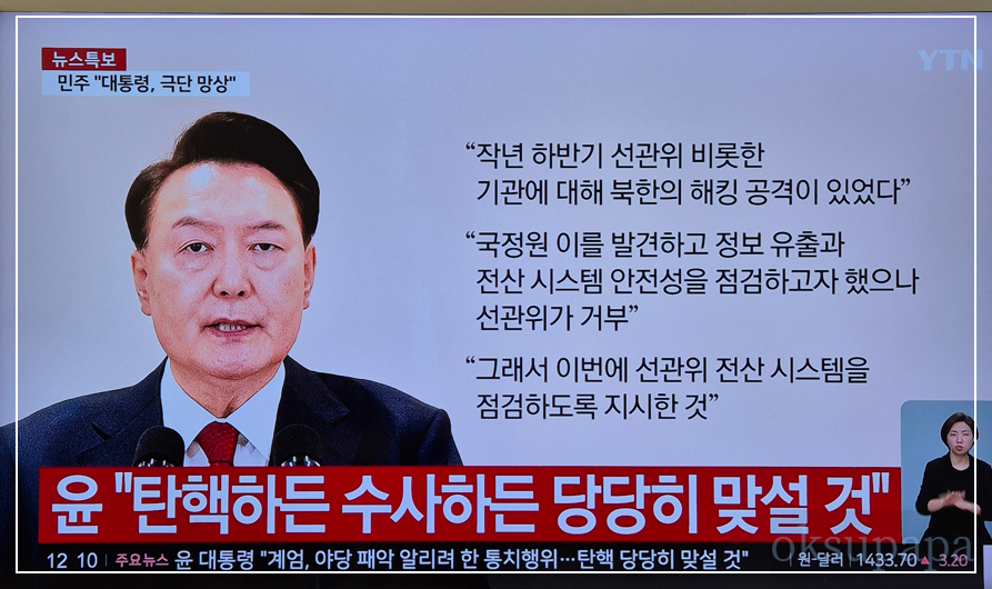 윤석열 대통령은 12월 12일 오전 용산 대통령실에서 열린 대국민 담화를 통해 거대 야당의 지속적인 비판과 국정 방해에 대해 강도 높은 입장을 표명했다. 특히, 그는 자신에 대한 탄핵이나 수사 가능성을 언급하며, "저를 탄핵하든, 수사하든 저는 이에 당당히 맞설 것"이라고 선언해 눈길을 끌었다.