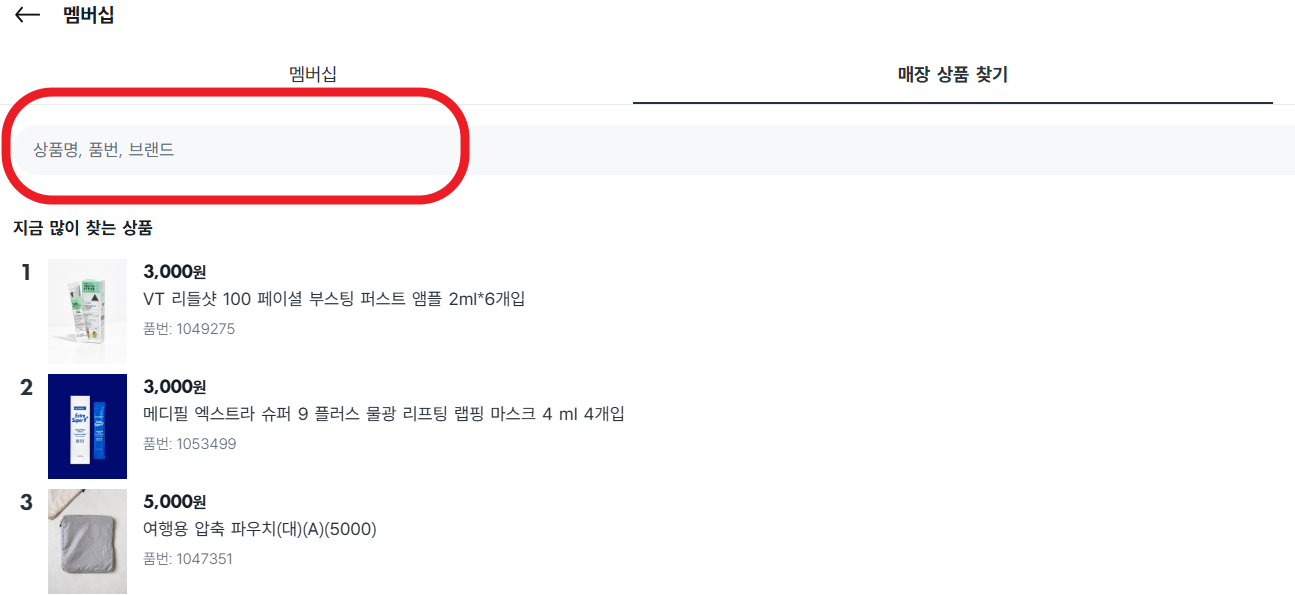 3. 상품명or 품번 입력