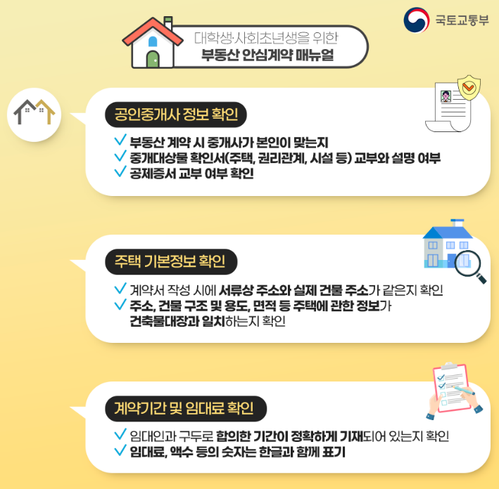 부동산 계약을 체결할 때 반드시 유의해야 할 사항이 있습니다. 특히 대학생이나 사회초년생이라면 더욱 신중하게 계약을 진행해야 하는데요. 안전한 부동산 계약을 위한 핵심 사항을 정리해 보겠습니다.