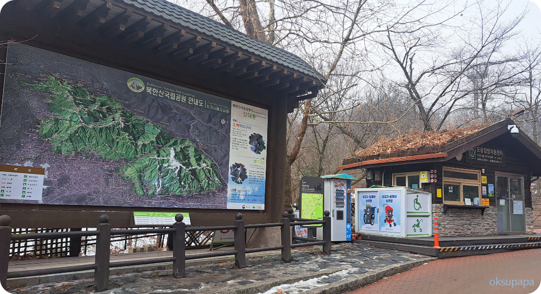 - 탐방지원센터: 등산로 안내도 확인 가능, 화장실 이용 가능