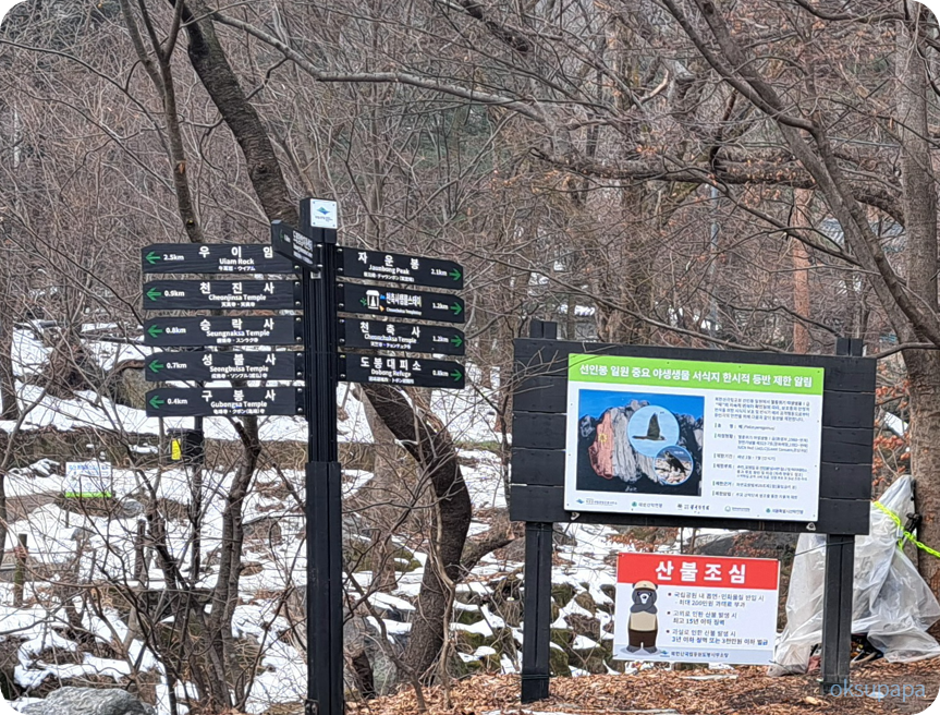✔ 쓰레기 되가져가기: 국립공원 보호를 위해 깨끗한 산행 유지