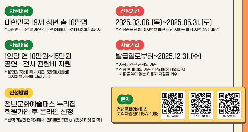 이 패스를 통해 다양한 문화예술 공연과 전시를 보다 쉽게 즐길 수 있으며, 최대 15만 원까지 지원받을 수 있습니다.