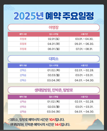 - 예약 후 반드시 해당 국립공원의 공지사항을 확인하세요.