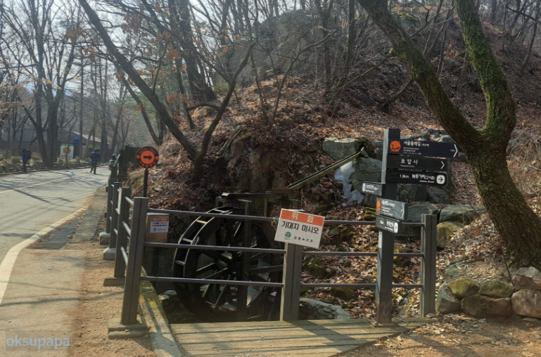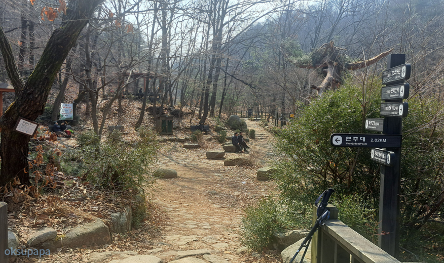 - 서울둘레길 갈림길(호압사 방향): 둘레길과 합류하는 지점