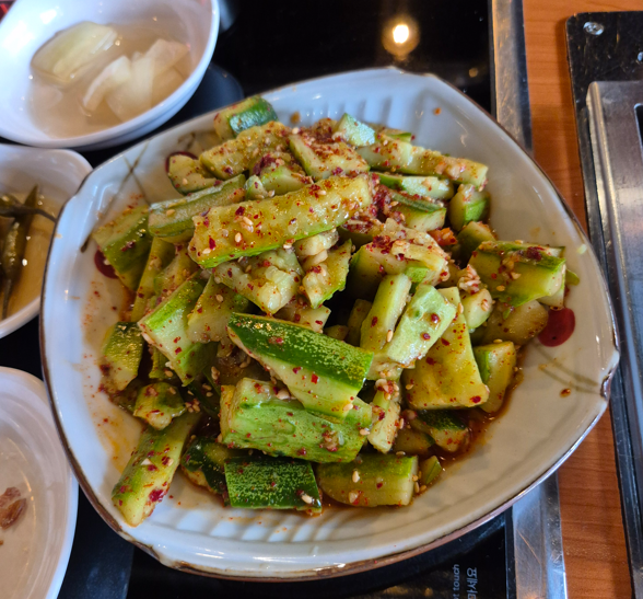 오이무침 새콤매콤달콤해서 양갈비와 함께 먹으면 느끼한 맛을 잘 잡아주어 추천!