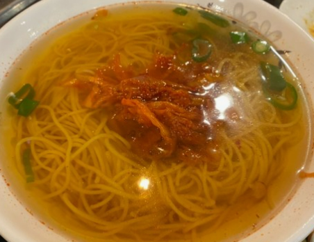 옥수수국수 따뜻한 김치말이 국수에 옥수수면 사용, 양꼬치와 함께 먹기 좋은 깔끔한 맛