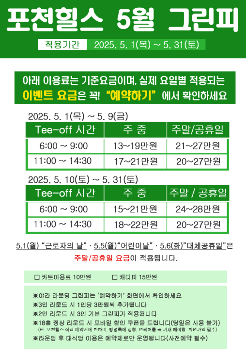 포천힐스CC 예약 신청은 공식 홈페이지에서 가능합니다: