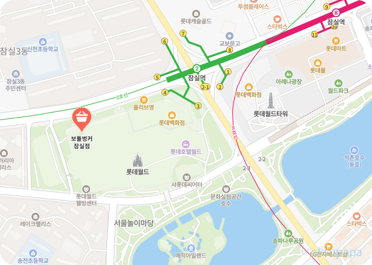 - 지하철: 2호선·8호선 잠실역 4번 출구에서 도보 약 3분