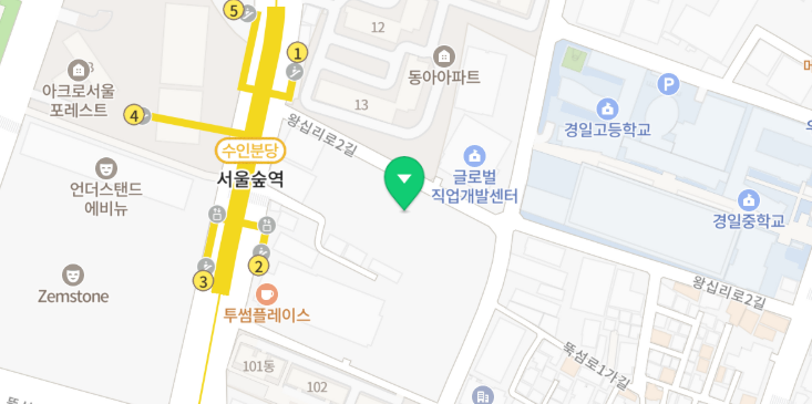 - 지하철 교통: 수인분당선 ‘서울숲역’ 초역세권, 2호선 ‘뚝섬역’ 도보 이용