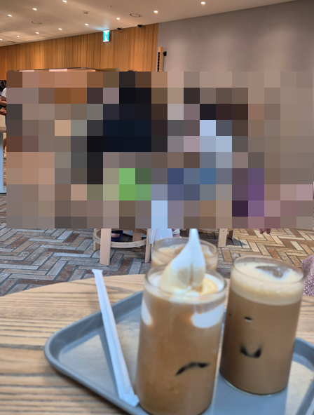 커피는 5층에 있는 블루보틀에서 마셨는데 주변 정원공간에 있어 좋았다。