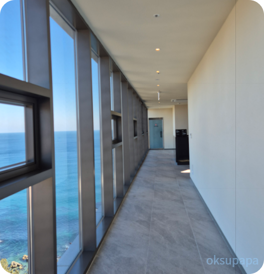 수영장 발권은 9층에서 먼저 해야한다. 수영장 가는 길 뷰도 멋있네.
