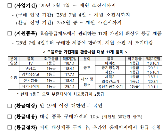 ✅ 에너지소비효율 1등급 가전제품을 구매하면 구매금액의 일부를 환급