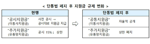 • 변경: 공시 의무 사라짐, 하지만 자율적으로 홈페이지 등 통해 지원금 공개 예정