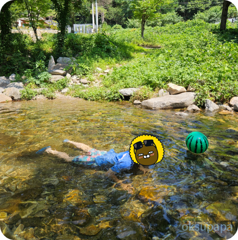 이날 폭염 날씨여서 물이 너무 차가웠는데도 아이들은 몇시간 신나게 놀았다.