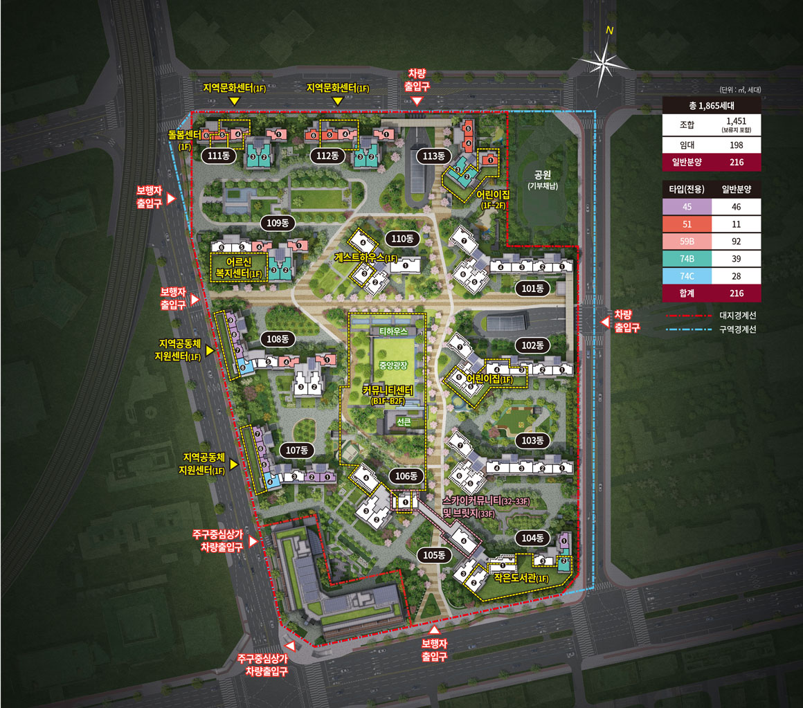 - 규모: 지하 3층 ~ 지상 35층, 13개 동, 총 1,865세대