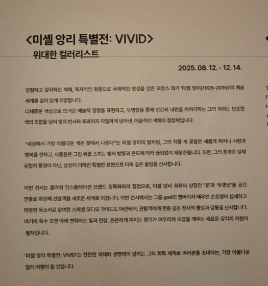 | 전시명 | 위대한 컬러리스트 미셸 앙리: VIVID |