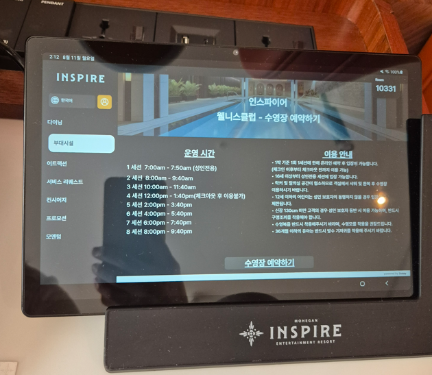 체크인해서 입실하자마자 수영장 시간대를 객실내에 있는 탭에서 예약을 먼저해야한다.