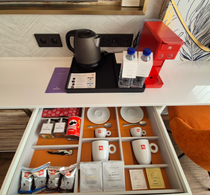 미니바에는 생수와 일리커피, 티 는 무료로 제공된다. 커피는 맛있어서 다 마시고 왔다~