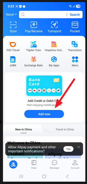 - 계좌/카드 연동: 중국 은행 계좌 혹은 해외 신용카드 등록