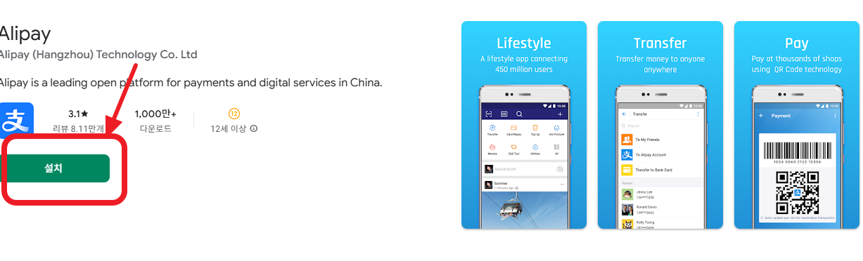 알리페이 앱 설치하기