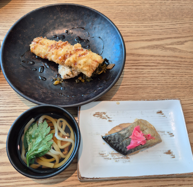 | 식사용 메뉴 | 고등어 간장조림 / 아나고 덴동 / 우동 중 택1 | 초밥 이후 느끼함을 덜어주는 역할 |