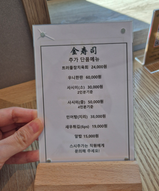 - 초밥 이후 나오는 식사용 메뉴가 배부른 상태에서는 다소 부담스러울 수 있음