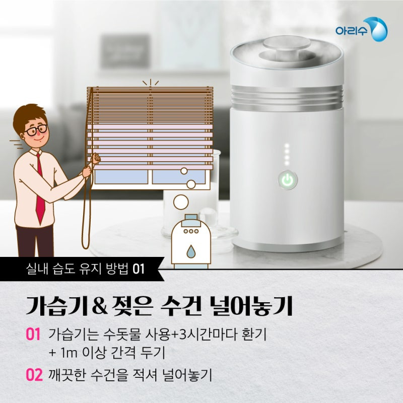 - 실내 습도 50~60% 유지 → 같은 온도라도 더 따뜻하게 느껴짐
